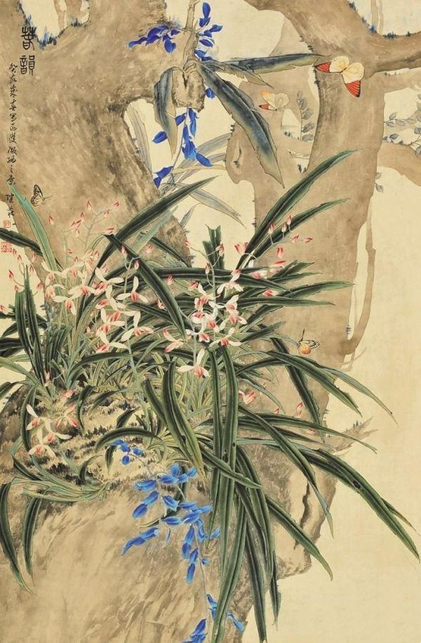 许继庄《春韵》:许继庄先生的作品非常注重构图疏密聚散所产生的节奏变化,在他的很多工笔花鸟作品中,都用繁复密匝、掩映错落的线型构成画面主体。如果没有平时对自然景致的细心观察和体物入微的心理感应能力,是很难将所见的平常素材加工升华为质朴隽永的艺术形式的。此作为他的代表作品之一,入选第六届全国美展,并获北京市美术创作奖。从这件作品我们不难看出画家追寻的仍是一种质朴自然的气息传达,可以说,它是许继庄花乌画艺术灵魂所在。