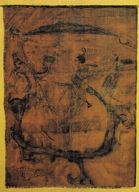 佚名《驭龙图》作品介绍:帛画;纵37.5厘米,横28厘米;藏于湖南省博物馆。