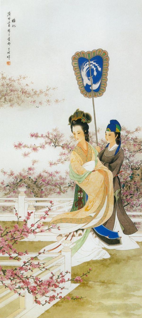 王叔晖《梅妃》作品介绍:绢本,设色;纵130.5厘米,横58.1厘米;作于1980年;藏于荣宝斋。