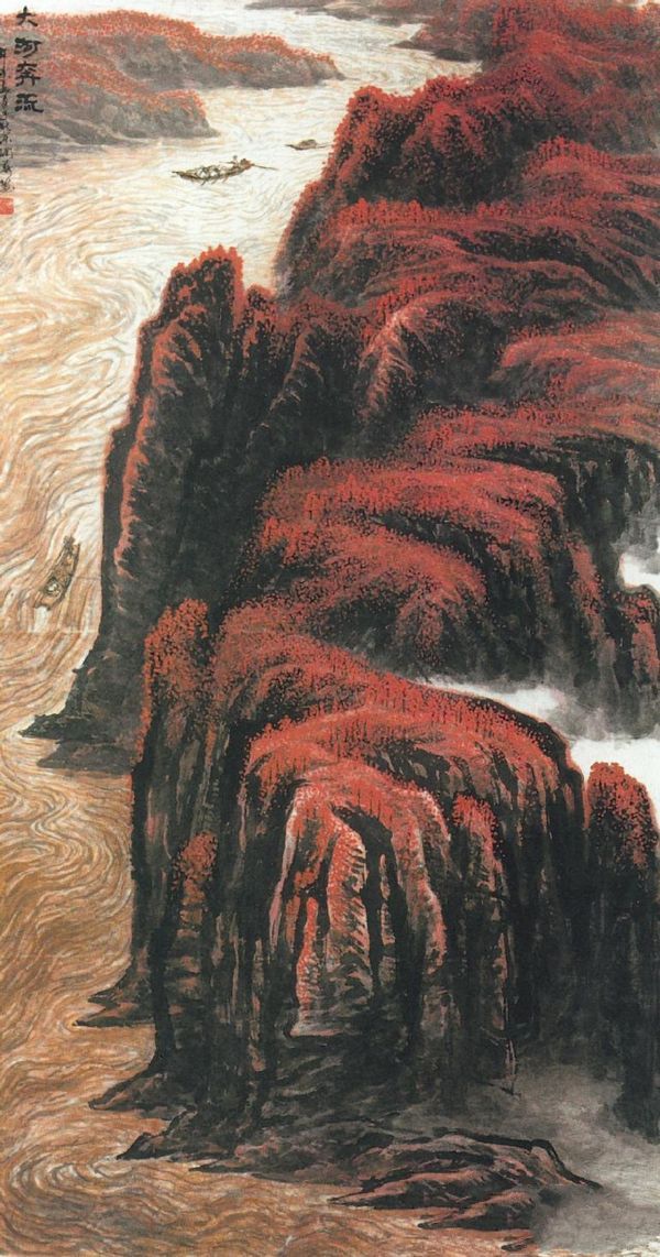 黄润华《大河奔流》作品介绍 :纸本,设色;纵178厘米,横96厘米;作于1991年;藏于作者家属。