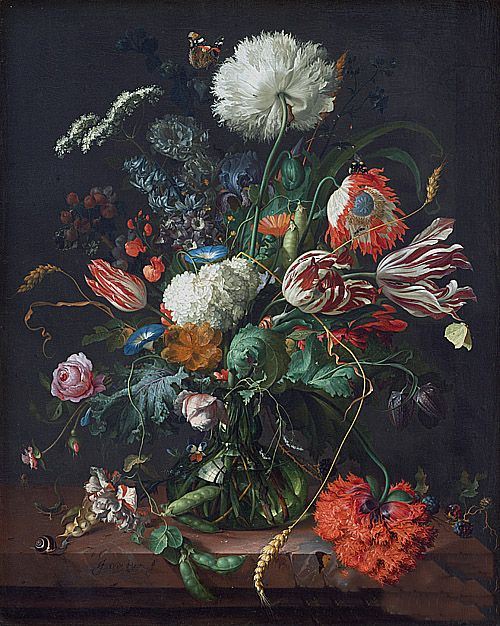 希姆《瓶花》作品介绍:外文名Vase of Flowers;画布,油彩Oil on canvas;纵69.6厘米,横56.5厘米;作于1660年;藏于美国华盛顿区国家画廊 National Gallery of Art at Washington,DC。