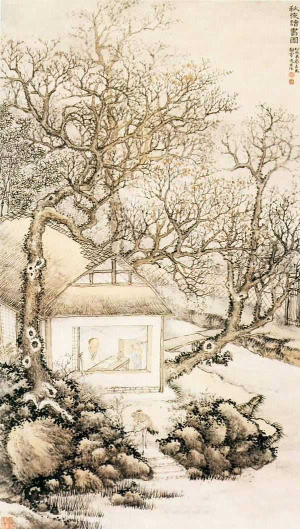 蔡嘉《秋夜读书图》