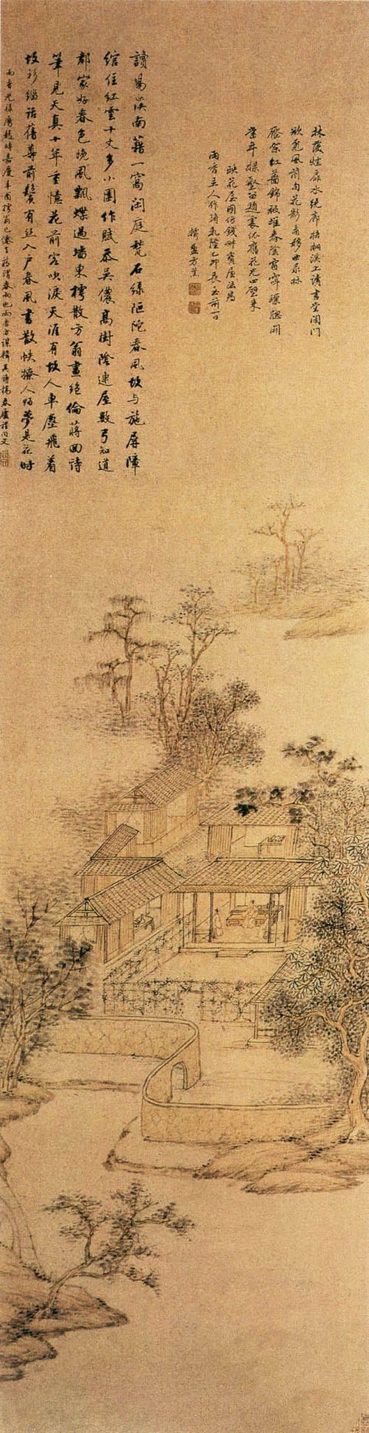 方薰《映花书屋图》简介:纸本,立轴,设色;纵126厘米,横34.2厘米;藏于北京故宫博物院。