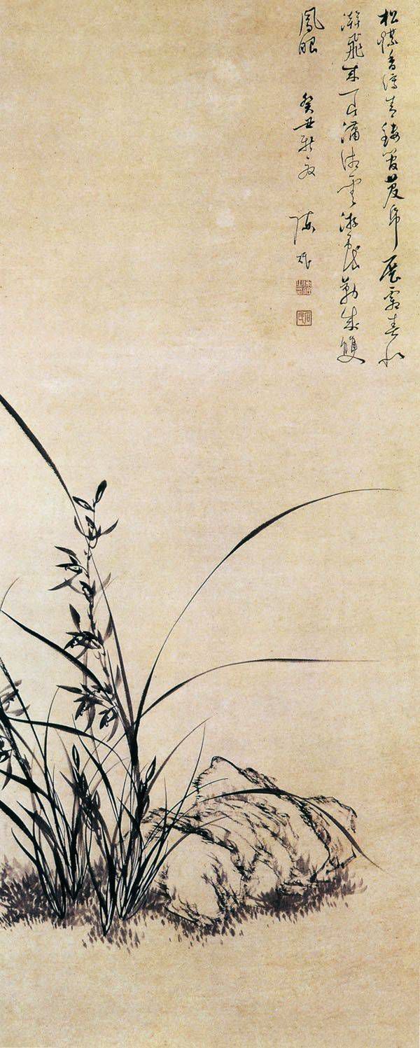 陈珉《兰石图》简介:纸本,立轴,墨笔;纵99.8厘米,横40.7厘米;藏于江苏南京博物馆。