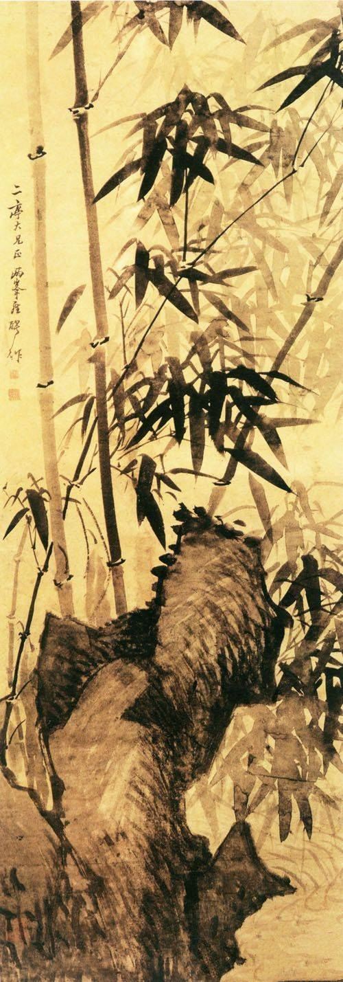 罗聘《竹石图》简介:纸本,立轴,墨笔;纵121.8厘米,横58.8厘米;藏于江苏南京博物馆。