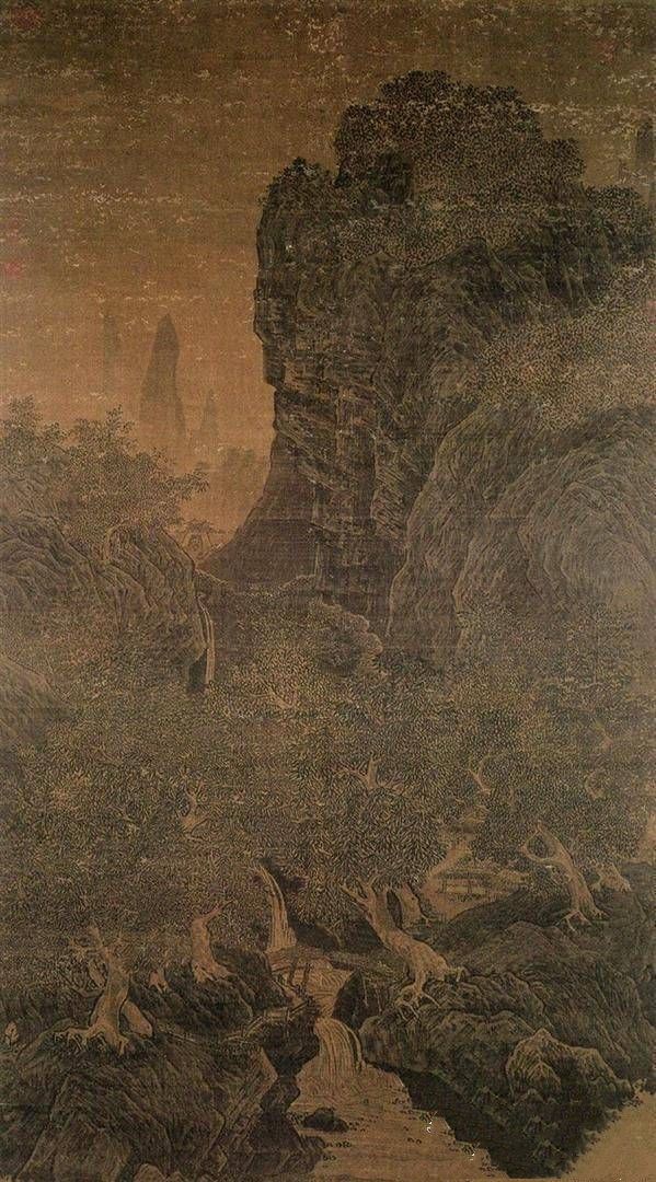 范宽作品《秋林飞瀑图》简介:绢本,立轴,设色;纵181厘米,横99.5厘米;藏于中国台北故宫博物院。