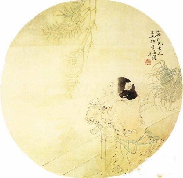 任颐作品《人物图》:这件作品被后世认为是任颐的早期之作,因为作品用笔工细,完全符合任颐早期的仕女作品的特点。作品中,一位美丽的女子正在伏在围栏之上,手托下巴,眼望春柳,恍然若失。作品构图虽然简单,但是用笔却十分细致。以细笔描绘青丝盘头,淡墨写面部、手指;衣纹线条流畅,起笔多顿点,用富有装饰性的钉头鼠尾描形成有节奏的白描效果。法自任薰,设色清淡,工写兼备。