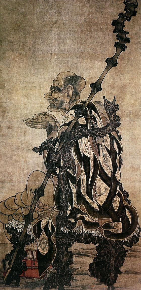 《十六罗汉图·诺距罗》简介:绢本,立轴,设色;纵129.1厘米,横65.7厘米;藏于日本高台寺。