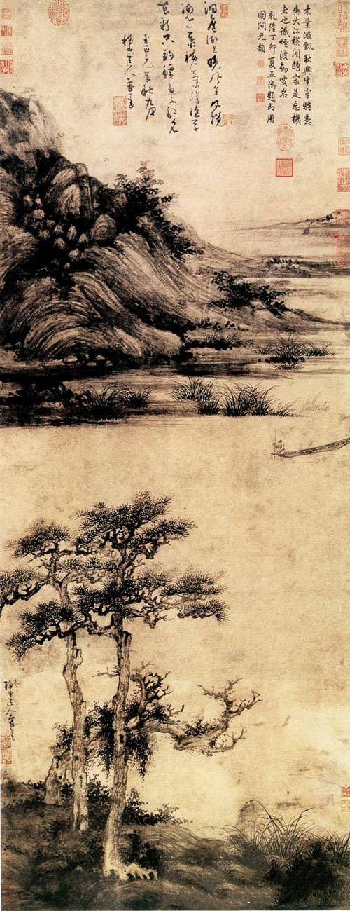 《洞庭渔隐图》简介:纸本,立轴,墨笔;纵146.4厘米,横58.6厘米;藏于中国台北故宫博物院。