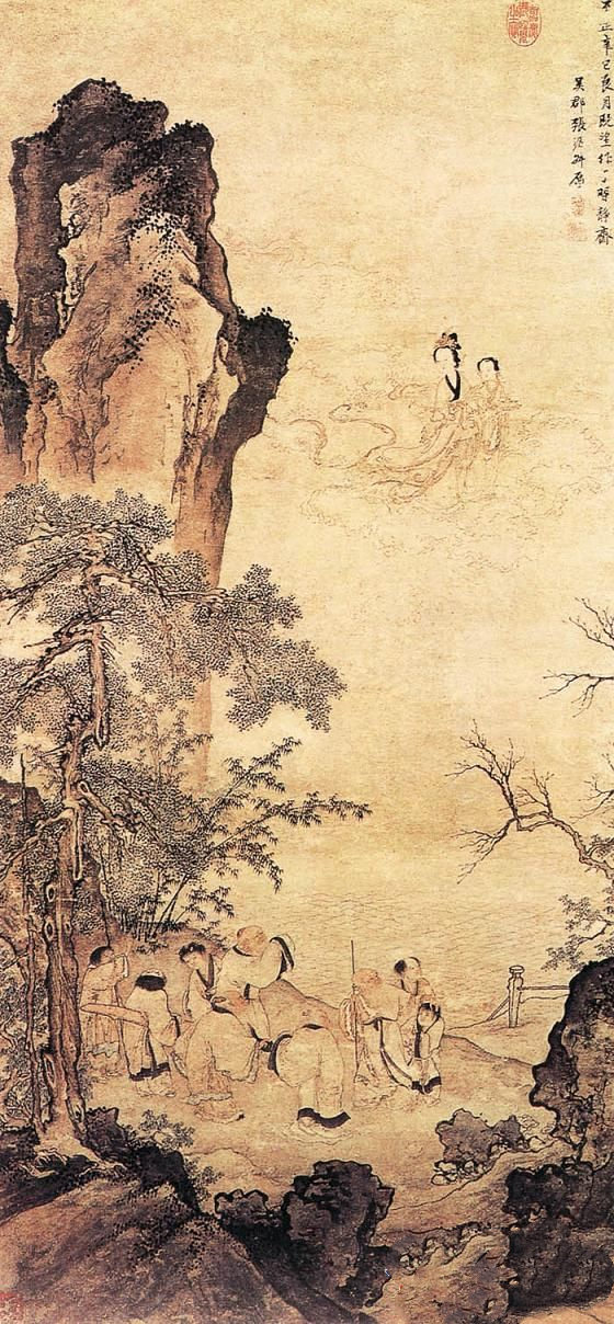 《瑶池仙乐图》简介:纸本,立轴,淡设色;纵116.1厘米,横56.3厘米;藏于中国台北故宫博物院。