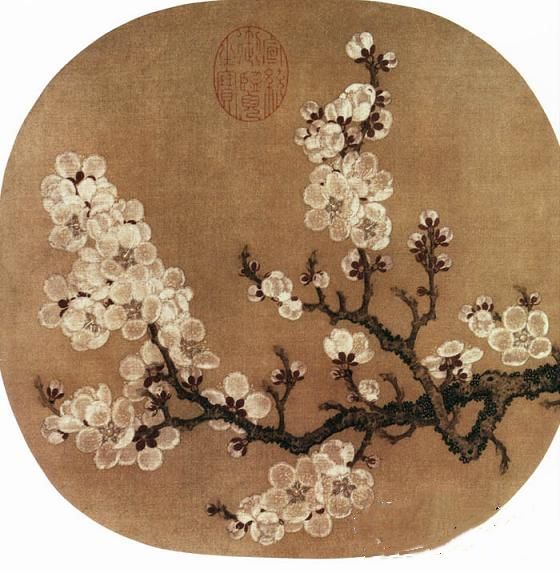 《杏花图》简介:绢本,团扇,设色;纵25.2厘米,横27.3厘米;藏于中国台北故宫博物院。