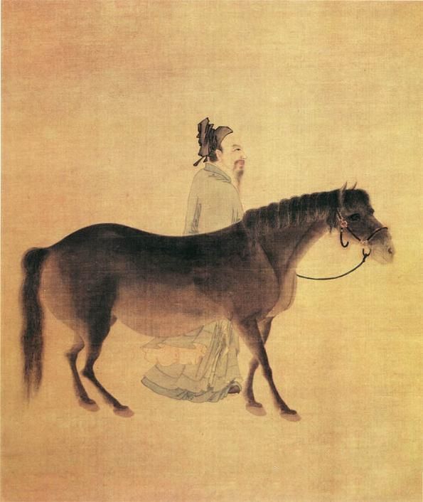 《奚官放马图》:《奚官放马图》是张穆的代表作品,这里选取的只是整幅作品中的一部分。这件作品没有画任何的背景,大片空白上只画一人一马,相伴而行。马不备鞍,姿态颀长、健壮,浑圆的身躯表明它刚饱餐完毕,奚官神情怡然,牵马信步而行。人马周围虽然没有画任何东西,但却似万物皆存,意境广阔高远。马重渲染,浓淡相宜,富有体积感;人重线描,衣袂飘摆,用笔劲细。画面似一首抒情小曲,清秀隽永,耐人回味。