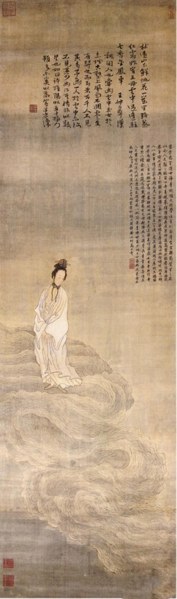 《云中玉女图》简介:立轴,绫本,设色;纵168厘米,横52.5厘米;藏于上海博物馆。