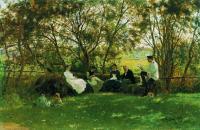 伊利亚·列宾( Ilya Repin) –在草皮长凳上。图片。1876年 伊里亚·叶菲莫维奇·列宾(英文名:Ilya Yafimovich Repin,1844年8月5日—1930年9月2...