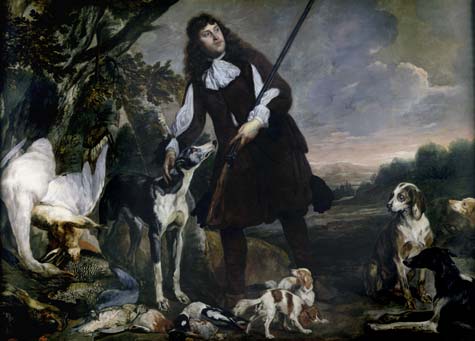 这幅真人大小的未知猎人肖像被认为是 Pieter Thijs 和 Pieter Boel 的合作作品。两位艺术家都出生于安特卫普,并分别于 1644 年和 1650 年成为圣卢克公会的成员。由于这幅画中的猎人形象,Thijs 以大型宗教作品和优雅的肖像画而闻名。游戏和狗归功于 Pieter Boel,他是动物绘画专家,他是一位多才多艺的静物画家。Boel 于 1668 年之后活跃于法国,并担任路易十四(1638-1715)的Peintre Ordinaire。在法国期间,Boel 为 Gobelins 工厂制作了挂毯设计,并对皇家动物园中的动物进行了研究。
