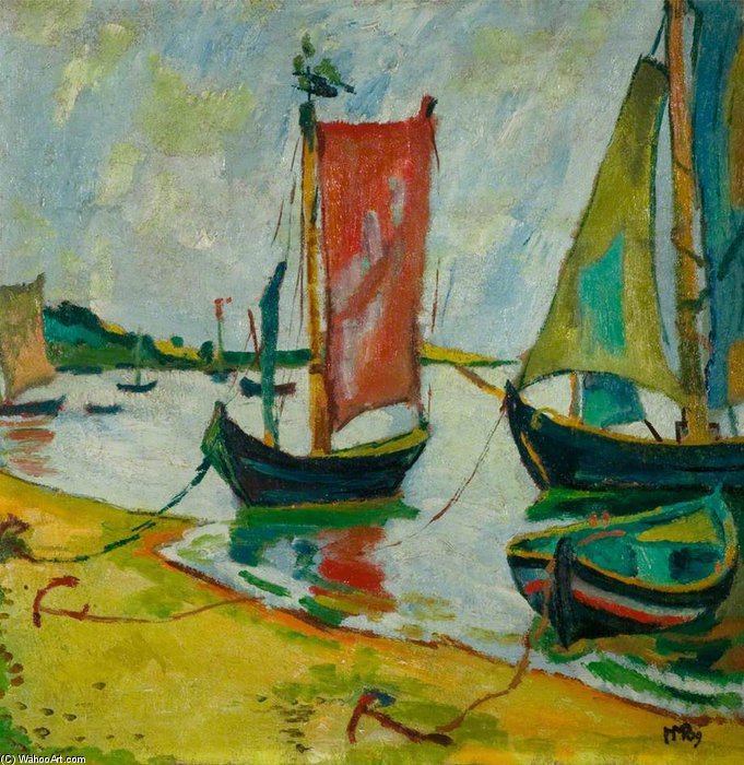 赫尔曼·马克斯·佩希斯坦(Hermann Max Pechstein)-《Nidden 海岸线 钓鱼船》作品
