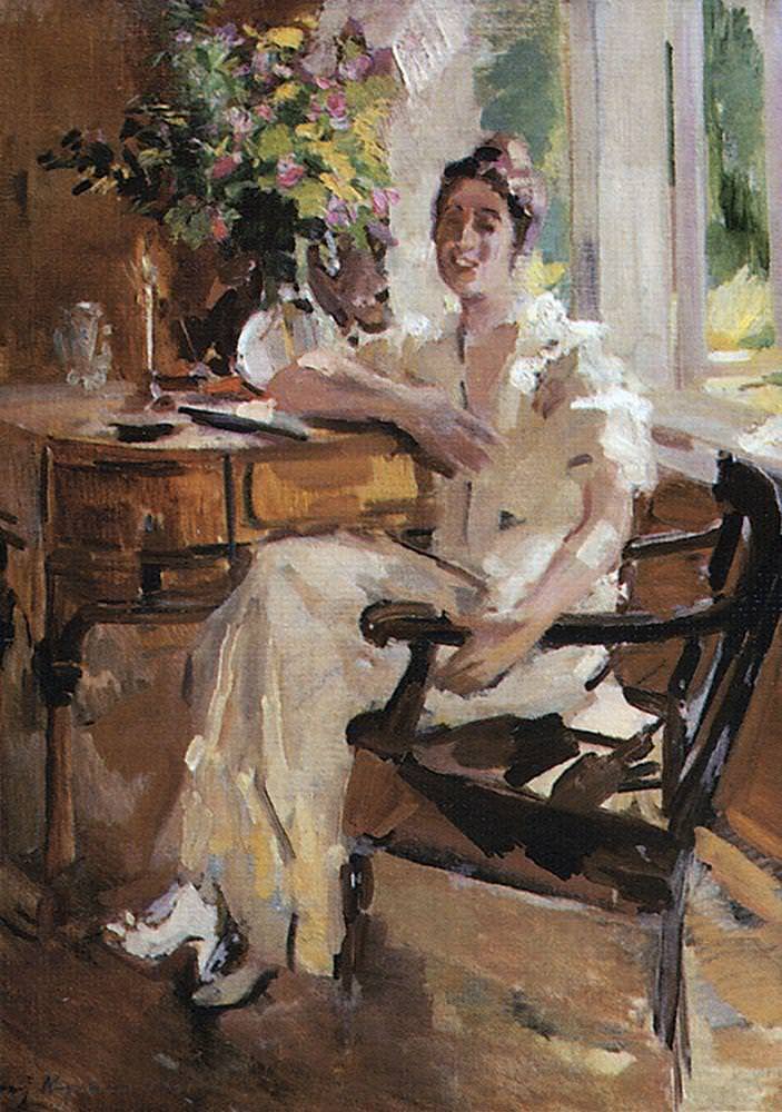 康斯坦丁·柯罗文 ( Konstantin Alekseevich Korovin)-《椅子上的女士,1917年》作品欣赏