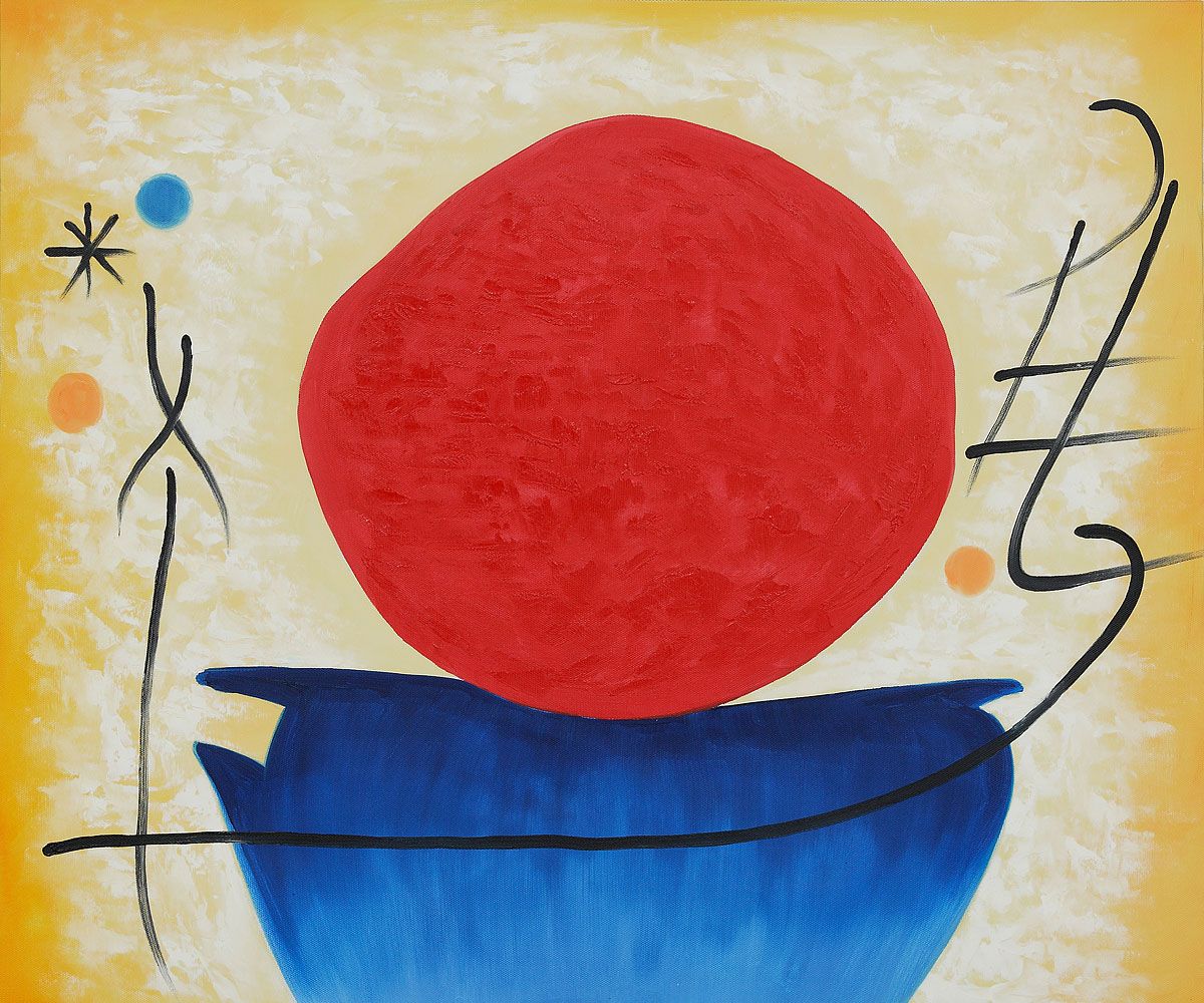 琼·米罗 (Jon Miro) 的《红太阳》作品欣赏 作者: 时间:09-12 浏览: 错误报告 完成时间:1948年 风格或时期:超现实主义 尺寸:91 厘米 x 71 厘米 地点:菲利普斯收藏 介质:布面油画。 在这幅特别的画作中观察到了琼·米罗专攻的抽象表现主义主题。红色的大圆圈,这里是太阳,坐在蓝色的平原上,那是晴朗的天空。还可以看到围绕该图的抽象线条和圆圈。他特别倾向于在画布上投射宇宙的不同元素,这件作品证明了这一点。 延伸阅读: 埃米尔·诺尔德(Emile Nolde)-《Legend-圣玛丽埃及 - 死巴勃罗·毕加索(Pablo Picasso)-裸体人物,1910 年作品卢卡·乔丹奴(Luca Giordano)-所罗门的审判 1665年油画扬·阿瑟林(Jan Asselijn)-南部景观与农民 1647年油画作卡洛·马拉塔(Carlo Maratta)-圣马可福音传教士 1655年-加斯帕·范·威特尔(Gaspar van Wittel)-罗马纳沃纳广场阿德里亚恩·范·奥斯塔德(Adriaen van Ostade)-小酒馆吴昌硕国画荷花作品欣赏明代王谷祥《水仙》1501–1568年作品明朝唐寅《梧桐树下喝茶》,1509年作品 标签:琼·米罗作品 上一篇:琼·米罗 (Jon Miro) 的《文森特·努比奥拉的肖像》作品欣赏 下一篇:前500幅世界名画-琼·米罗 (Jon Miro) 的《绘画 1933》作品欣赏 最新文章推荐 约翰·克里斯蒂安·达尔(Johan Chri 朱利安·杜佩(Julien Dupré)作品-Ha 弗雷德里克·埃德温·丘奇(Frederic 神坂雪佳(Kamisaka Sekka,日本画家) 路易斯-让-弗朗索瓦·拉格尼(Louis- 弗朗索瓦·布歇(François Boucher) 留言与评论(共有 条评论) 验证码: