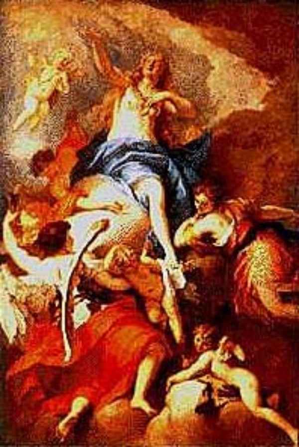 利奇的名作,是《圣库列可利维斯和炼狱之魂》,这是他晚年的代表作品。此外,就数得上《抹大拉的玛利亚升天》了。这幅画取材于《圣经》,以此为题材的作品在利奇之前已经为许多画家画过。早在1455年前后,意大利的唐纳太罗进行过木雕,以后提香画过《忏悔的抹大拉》,卡拉瓦乔也画过这个题材,那是1595年;还有尼德兰的威丹。但这些画家的作品与利奇的都不同,他们都不过把抹大拉的玛利亚画成一幅肖像,或哭泣、或忏悔、或自卑、而不像利奇这样把抹大拉表现得那样圣洁,几乎与圣母玛利亚相似了。画中的半裸体的抹大拉如同天仙 她朴实又善良,纯洁而美丽,仰望着的面容和优雅的手臂姿态,表现出上升的趋势。可爱的小天使在她身旁飞舞跟随,增添了升天的欢乐气氛。原来抹大拉的玛利亚在《圣经》中是一个摆脱了被侮辱被损害的妓女,由于她的忏悔,得到了耶稣的赦免,而且成为一名圣徒。耶稣在接受她的忏悔之后,施法赶走了附在她身上的七个魔鬼,使她成为纯洁的女人,并侍奉在耶稣的身旁。耶稣受难复活以后,显灵说:无论在何处传道,都要宣扬抹大拉玛利亚的事迹。可以说 利奇的这幅画则根本地体现了耶稣显灵所说的这句话的意义,形象地宣扬了抹大拉玛利亚。玛 利亚在众天使的簇拥下,驾着云彩向天空升腾,这种上升的动势,显示了巴洛克艺术的特征。画家对飞腾上升的人物动态刻画准确而生动,各个角度上的人物动态各异,人物的翅膀描绘非常形象和自然。在色彩的运用上,利奇以大块的红色、蓝色形成较强烈的对比,增加了画面的动感。整幅画的色彩轻松明快,利奇没有去追求巴洛克的辉煌效果,显示了利奇独特的风格。