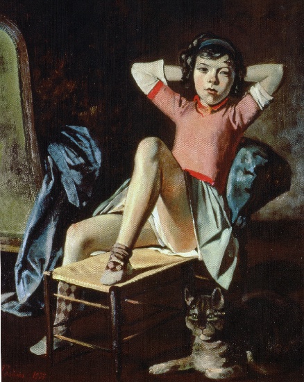系列画作“巴尔蒂斯:猫和女孩”,这位法国艺术家关注猫科动物和童年黑暗面的起源和排列。巴尔蒂斯对青春期的终生迷恋造就了他最具标志性的作品:青春期门槛上的女孩,徘徊在纯真之间和知识……”