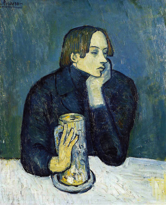 aime Sabartes 喜欢将自己视为“Bue period blueness 的祖先”。在这幅肖像中,毕加索将卡萨吉玛(一位自杀的密友)的形象与詹姆·萨巴特斯的形象融为一体。这幅肖像的特点不仅在于它的蓝色调,还在于它的清醒和使用封闭线,在它的简单性中确定了一个想法:艺术家对在孤独中让他的朋友感到惊讶时的同情心。