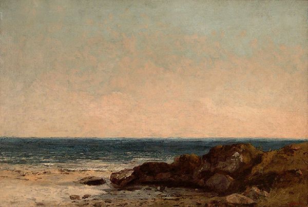 库尔贝《地中海的巡礼》简介:英文名View of the Mediterranean at Magueloe;画布,油彩Oil on canvas;纵92厘米,横135厘米;作于1858年;藏于荷兰阿姆斯特丹梵高美术馆Van Gogh Museum, Amsterdam。