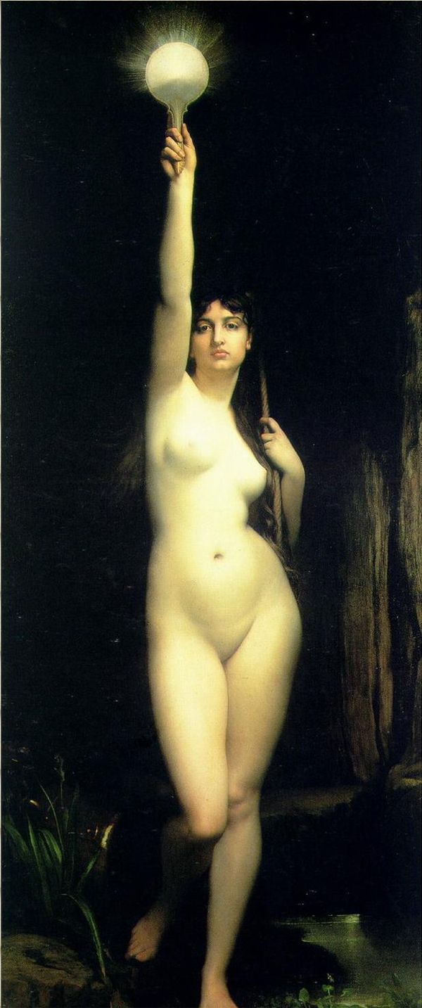 《真理》:此作为朱尔斯·勒菲弗尔的代表作品,是一幅极具象征意义的作品。在这件作品中,作者把真理描绘成一个美丽纯真的裸体少女,她一手高举着“光明”,一手紧握一根绳索,形象地说明了真理既复杂又单纯。画家以浪漫主义绘画的手法,描绘了身材修长的窈窕少女,少女纯净的眼睛凝视前方,体态匀称,曲线流畅,富于青春活力。无疑,美丽的裸体少女是真理的象征,也是艺术理想的象征。