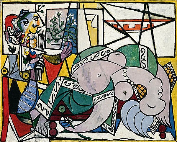 毕加索《工作室》简介:外文名Lo Studio;画布,油彩Oil on canvas;纵128厘米,横159.3厘米;作于1934 年;藏于美国印第安纳大学美术馆 Indiana University Art Museum。