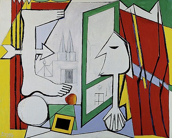 毕加索《艺术家的工作室》简介:外文名The Artist &rsquo Studio 或者The Open Window(开着的窗户);画布,油彩Oil on canvas;纵130厘米,横162厘米;作于1929年;藏于私人收藏 private collection。