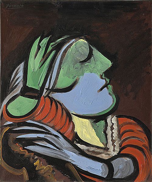 毕加索《沉睡的女人》简介:外文名Femme endormie;画布,油彩Oil on canvas;纵55.2厘米,横46.4厘米;作于1935年;藏于私人收藏 private collection。