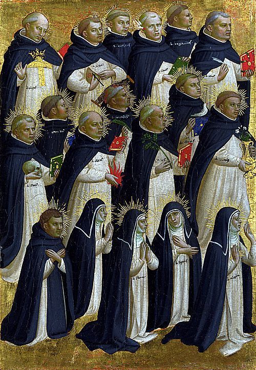 安基利柯《多明尼加祝福》作品介绍:外文名 Dominican Beati;白杨木、蛋彩Egg tempera on poplar;纵73厘米,横31.8厘米;作于1419 - 1435 年;藏于英国伦敦市国家画廊 National Gallery, London。