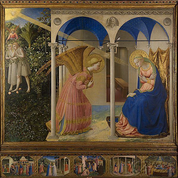 安基利柯《最后的审判》作品介绍:外文名Verkundigung an Maria ;木板、蛋彩Tempera on wood;纵154厘米,横194厘米;作于1430 - 1432 年;藏于西班牙马德里市普拉多博物馆 Museo del Prado, Madrid。