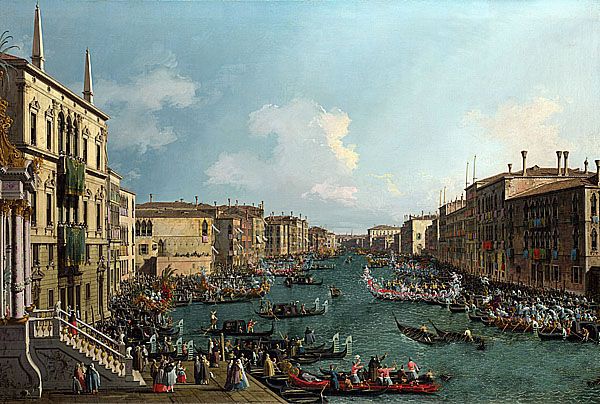 卡纳莱托《京杭大运河》作品介绍:外文名Grand Canal;画布,油彩Oil on canvas;纵122.1厘米,横182.8厘米;作于1740 年;藏于英国伦敦国家画廊 National Gallery, London。