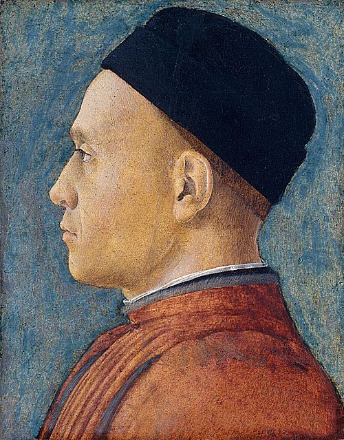 曼特尼亚《男子画像》作品介绍:外文名Portrait of a Man;纸板、蛋彩tempera on hardboard transferred from canvas transferred from panel;纵24.2厘米,横19.1厘米;作于1460年;藏于美国华盛顿特区国家画廊 National Gallery of Art at Washington DC。