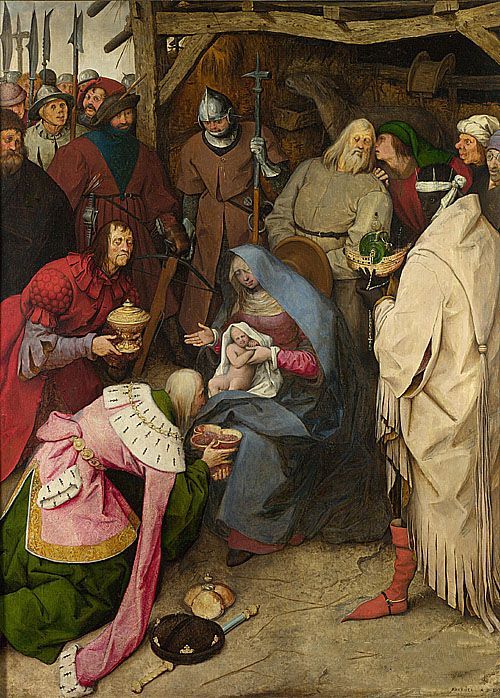 勃鲁盖尔《三贤王的膜拜》作品介绍:外文名The Adoration of the Kings;橡木、油彩oil on oak;纵112.1厘米,横83.9厘米;作于1564年;藏于英国伦敦国家画廊National Gallery, London。