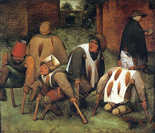 勃鲁盖尔《乞丐群》作品介绍:外文名The Beggars;木板、油彩oil on wood;纵18厘米,横21厘米;作于1568年;藏于法国巴黎卢浮宫Musee du Louvre, Paris。