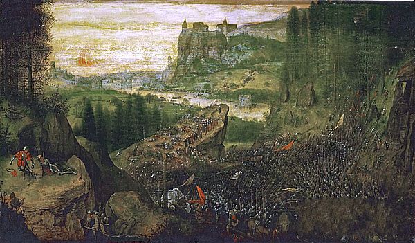 勃鲁盖尔《所罗的自杀》作品介绍:外文名 The Suicide of Saul;画板、油彩oil on panel;纵34厘米,横55厘米;作于1562年;藏于奥地利维也纳艺术史博物馆 Kunsthistorisches Museum, Vienna。