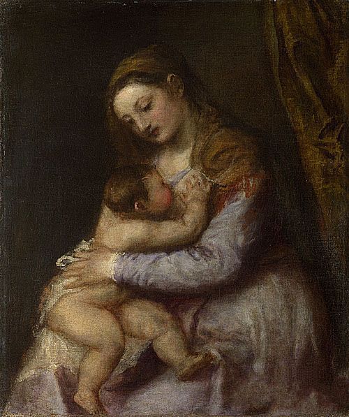 提香《圣母子》作品介绍:外文名The Virgin and Child;画布,油彩Oil on canvas;纵76.2厘米,横63.6厘米;作于1570 - 1576 年;藏于英国伦敦国家画廊 National Gallery, London。