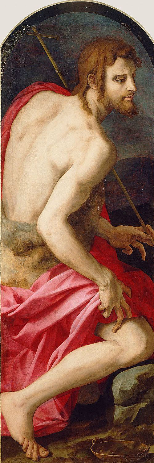 布隆基诺《圣施洗约翰》作品介绍:外文名 St. John the Baptist;画板,油彩oil on panel;纵154厘米,横53厘米;作于1542 - 1545 年;藏于美国加州保罗盖兹美术馆 J. Paul Getty Museum, Los Angeles。