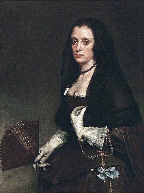 委拉斯贵支《拿扇子的女人》作品介绍:外文名The Lady with a Fan;画布,油彩oil on canvas;纵95厘米,横70厘米;作于 1630 - 1650年;藏于奥英国伦敦华莱士收藏馆 The Wallace Collection, London。