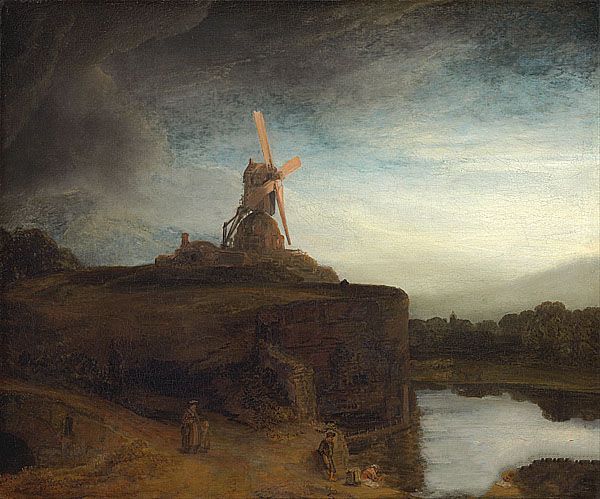 伦勃朗《磨坊》作品介绍:外文名The Mill;画布,油彩oil on canvas;纵87.6厘米,横105.6厘米;作于1645 - 1648 年;藏于美国华盛顿区国家画廊 National Gallery of Art at Washington,DC。