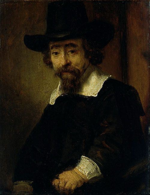 伦勃朗《犹太医师画像》作品介绍:外文名Dr Ephraim Bueno, Jewish Physician and Writer;画板,油彩oil on panel;纵19厘米,横15厘米;作于1647 年;藏于荷兰阿姆斯特丹国立博物馆 Rijksmuseum, Amsterdam。