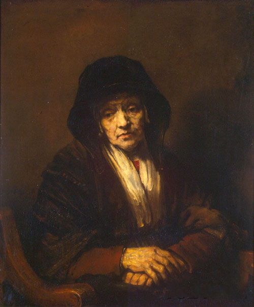伦勃朗《老妇人画像》作品介绍:外文名Portrait of an Old Woman;画布,油彩oil on canvas;纵109厘米,横84厘米;作于 1654 年;藏于荷俄罗斯圣彼得堡艾米塔吉博物馆 State Hermitage Museum, St. Petersburg。