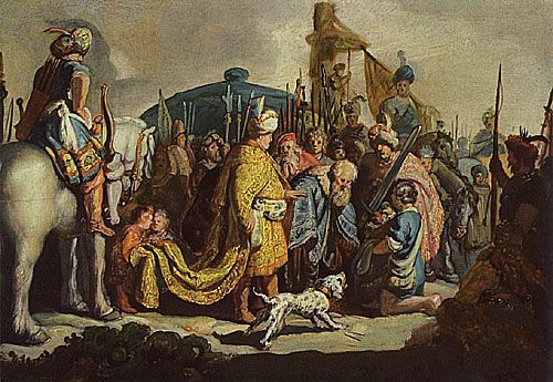 伦勃朗《大卫呈献葛利亚巨人之头给所罗王》
