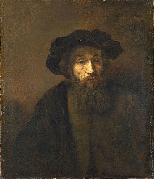 伦勃朗《有胡须的戴帽男子》作品介绍:外文名A Bearded Man in a Cap;画布,油彩oil on canvas;纵78厘米,横66.7厘米;作于1650年;藏于英国伦敦国家画廊 National Gallery, London。