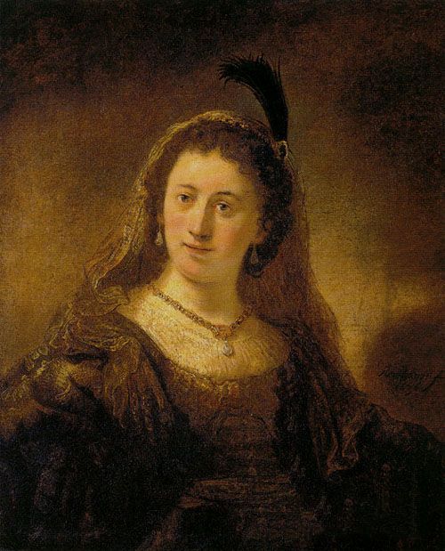 伦勃朗《艺术家夫人画像》作品介绍:外文名Portrait of Saskia van Uylenburgh;画布,油彩oil on canvas;纵79厘米,横66厘米;作于1636 年;藏于瑞士苏黎世比尔勒基金会 E.G. Buhrle Foundation Collection, Zurich。