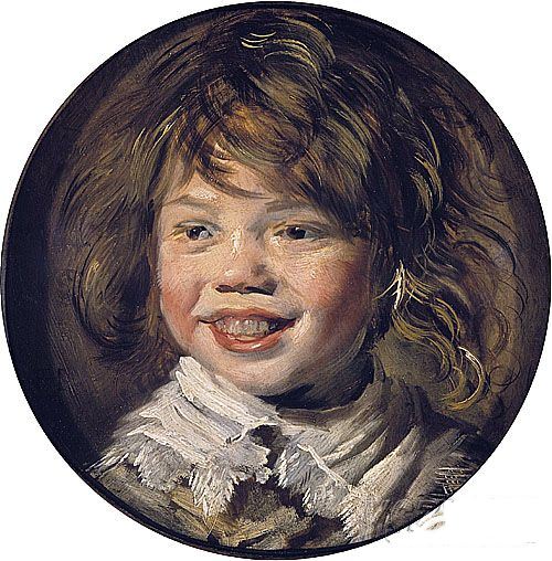 哈尔斯《开心的男孩》作品介绍:外文名 Laughing boy;画布,油彩Oil on canvas;直径29.5;作于 1625 年;藏于荷兰海牙莫瑞修斯皇家博物馆 Mauritshuis Royal Picture Gallery, The Hague。