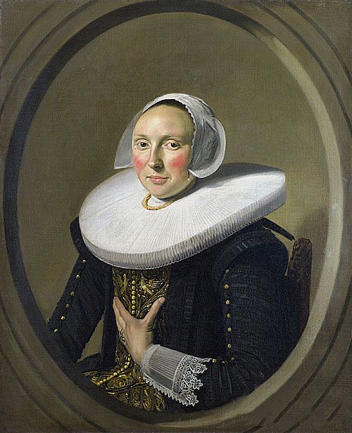 哈尔斯《妇人肖像》作品介绍:外文名Portrait of a Woman 或者Marie Larp;画布,油彩Oil on canvas;纵83.4厘米,横68.1厘米;作于1635 - 1638 年;藏于英国伦敦国家画廊 National Gallery, London。