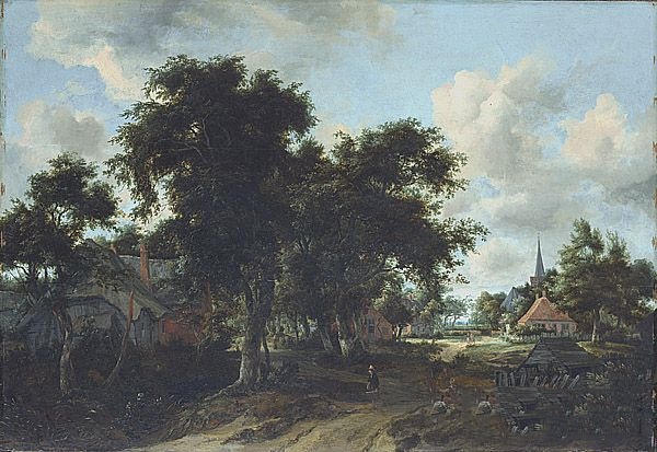 霍贝玛《进入村庄》作品介绍:外文名Entrance to a Village;木板,油彩oil on wood;纵74.9厘米,横110.2厘米;作于1665年;藏于美国纽约大都会美术馆 Metropolitan Museum of Art, New York
