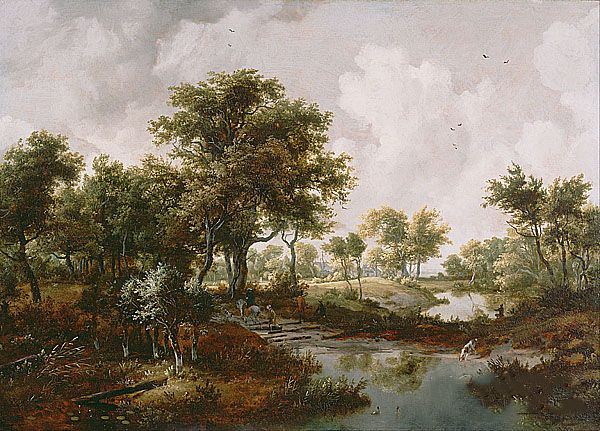 霍贝玛《森林风光》作品介绍:外文名A Wooded Landscape;画板,油彩oil on panel;纵60.69厘米,横85.09厘米;作于1667年;藏于美国加州保罗盖兹美术馆 J. Paul Getty Museum, Los Angeles 。